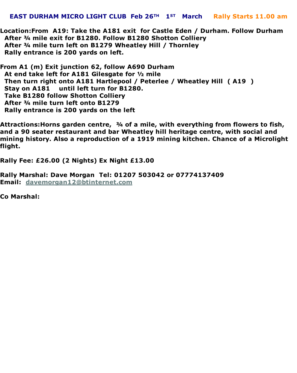 When booking a rally could you please give rally marshals at least one weeks notice prior to the event a deposit of £5.00 will be required ( holiday rally £10.00 )