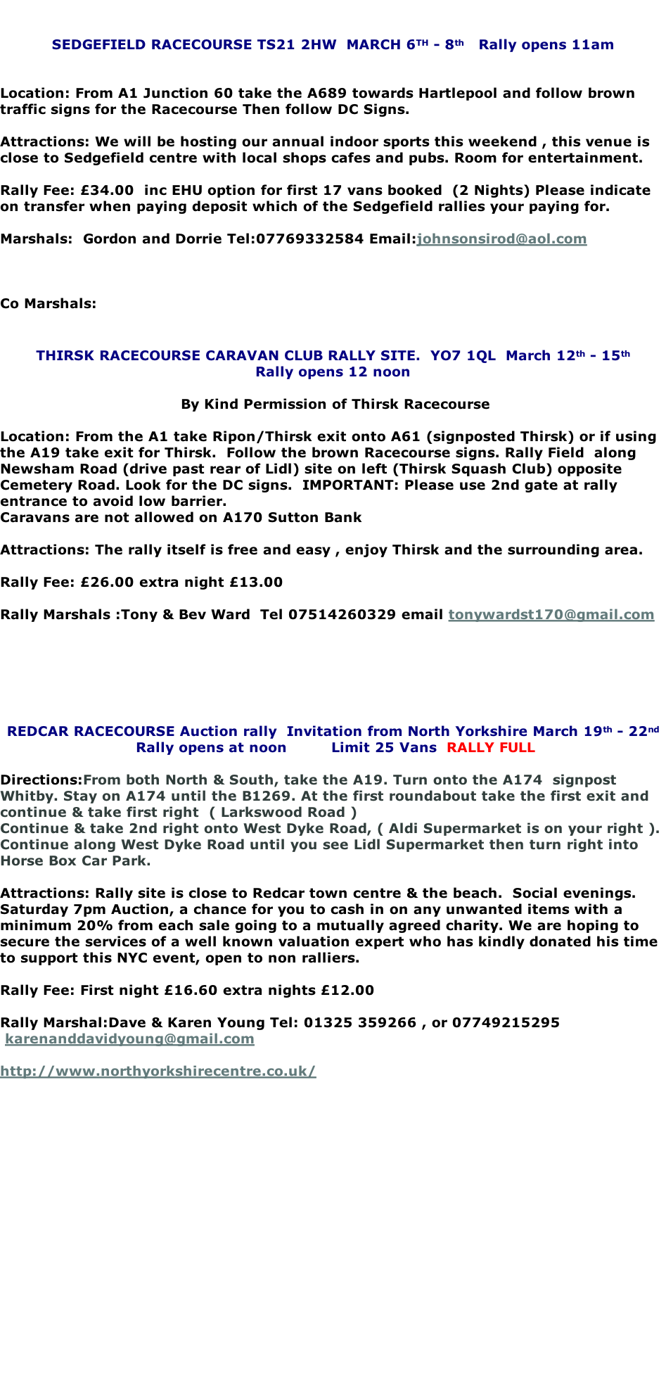 When booking a rally could you please give rally marshals at least one weeks notice prior to the event a deposit of £5.00 will be required ( holiday rally £10.00 )