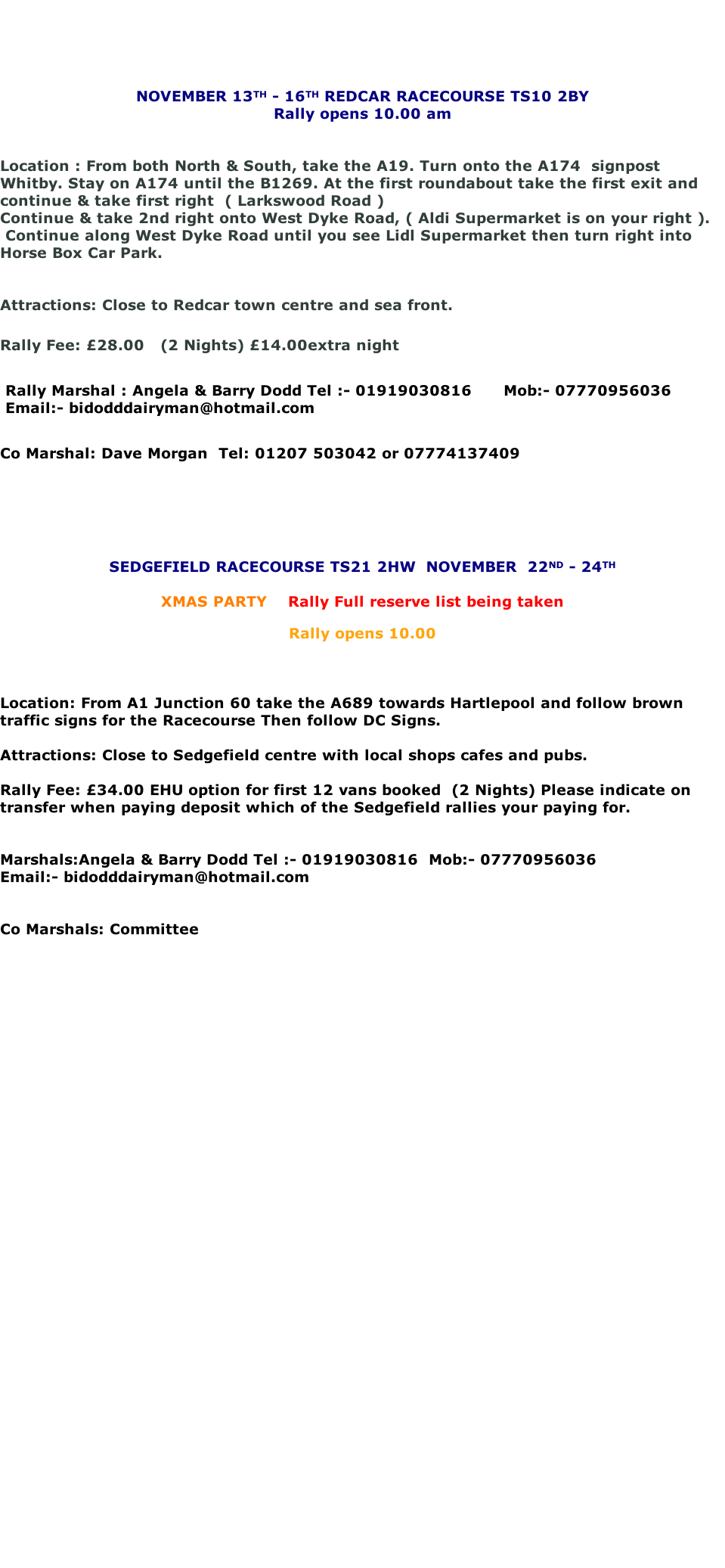 When booking a rally could you please give rally marshals at least one weeks notice prior to the event a deposit of £5.00 will be required ( holiday rally £10.00 )