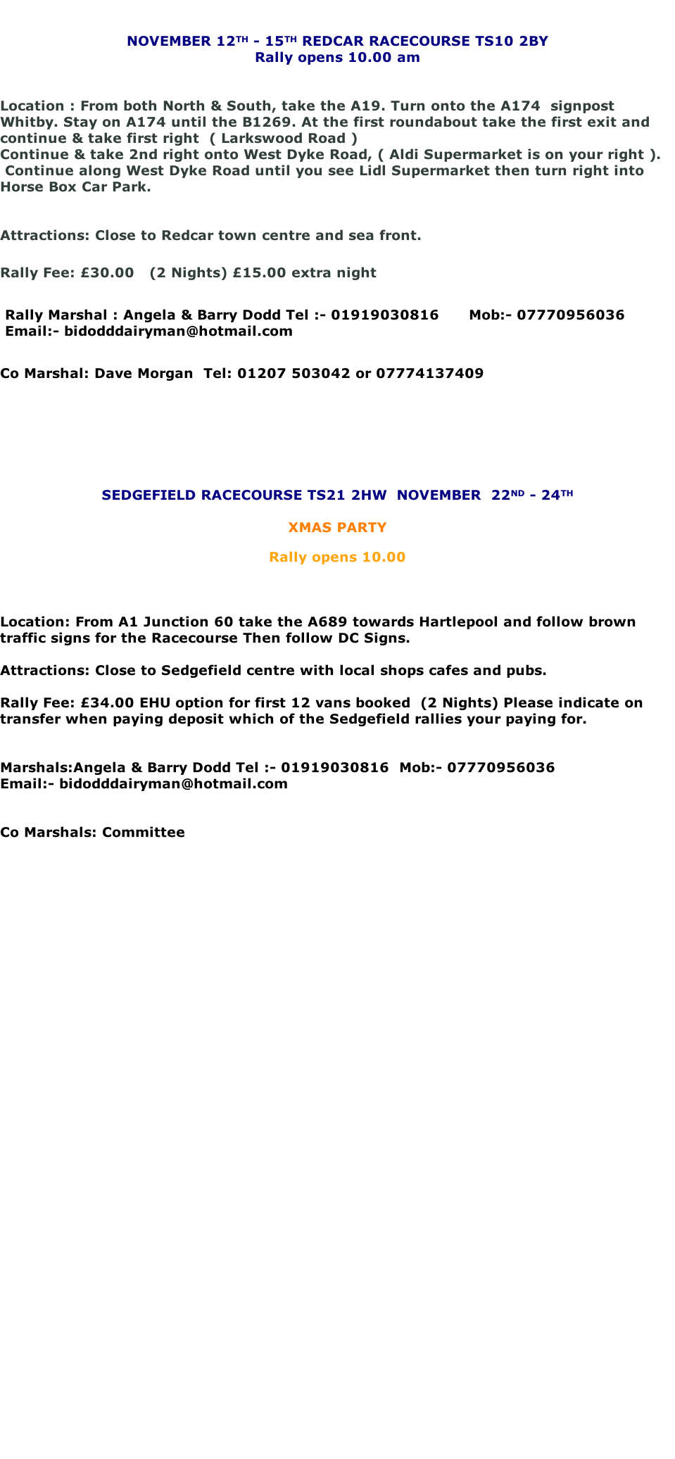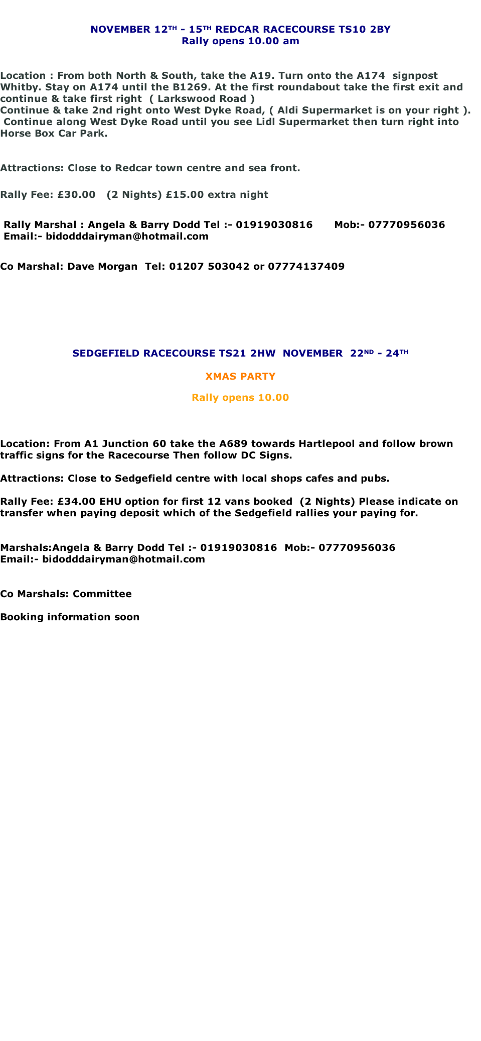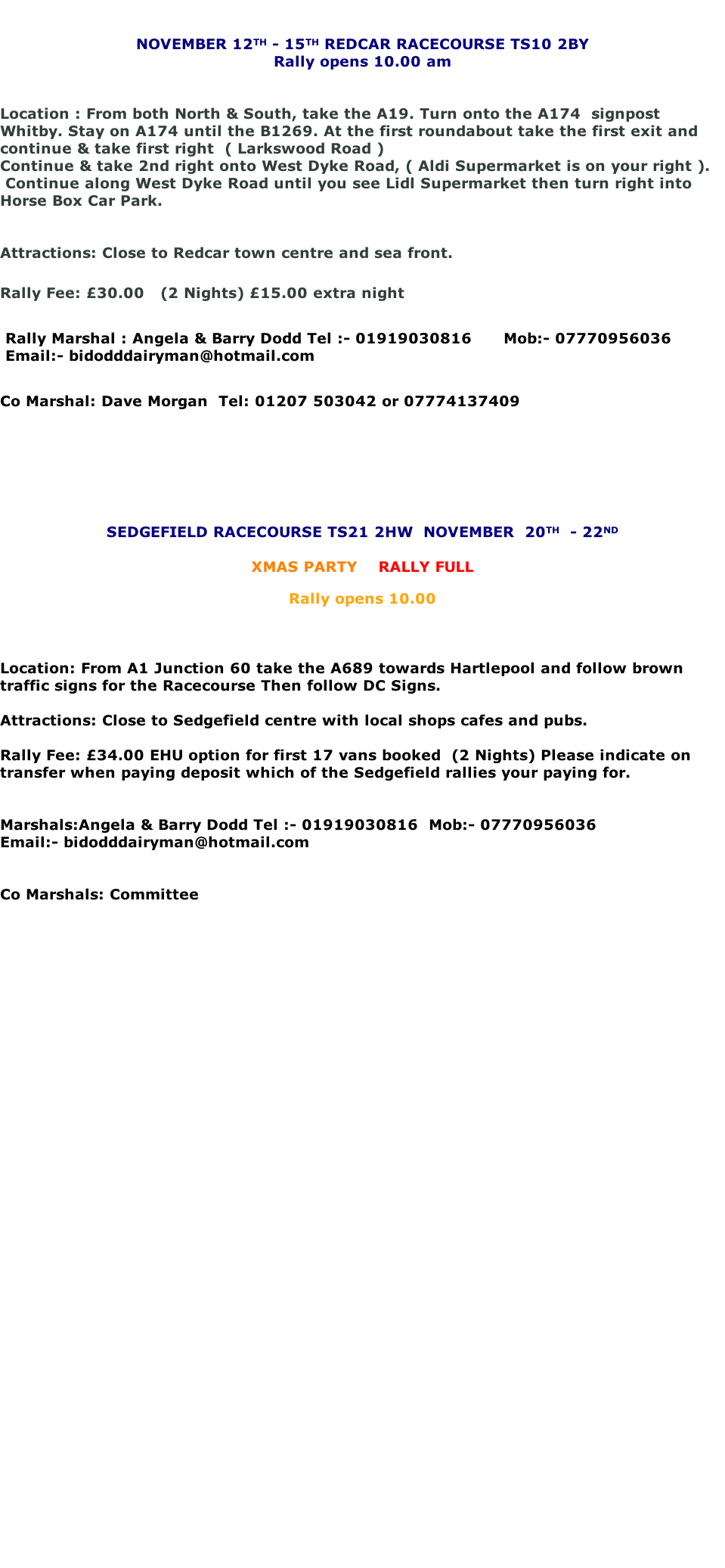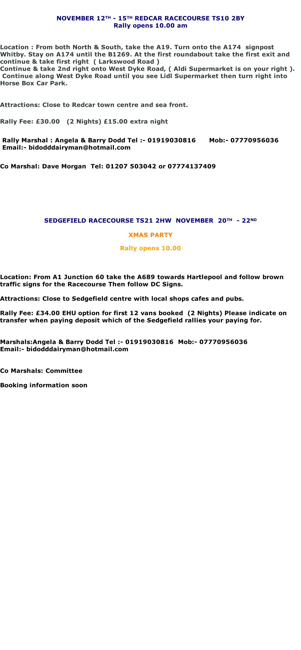 When booking a rally could you please give rally marshals at least one weeks notice prior to the event a deposit of £5.00 will be required ( holiday rally £10.00 )