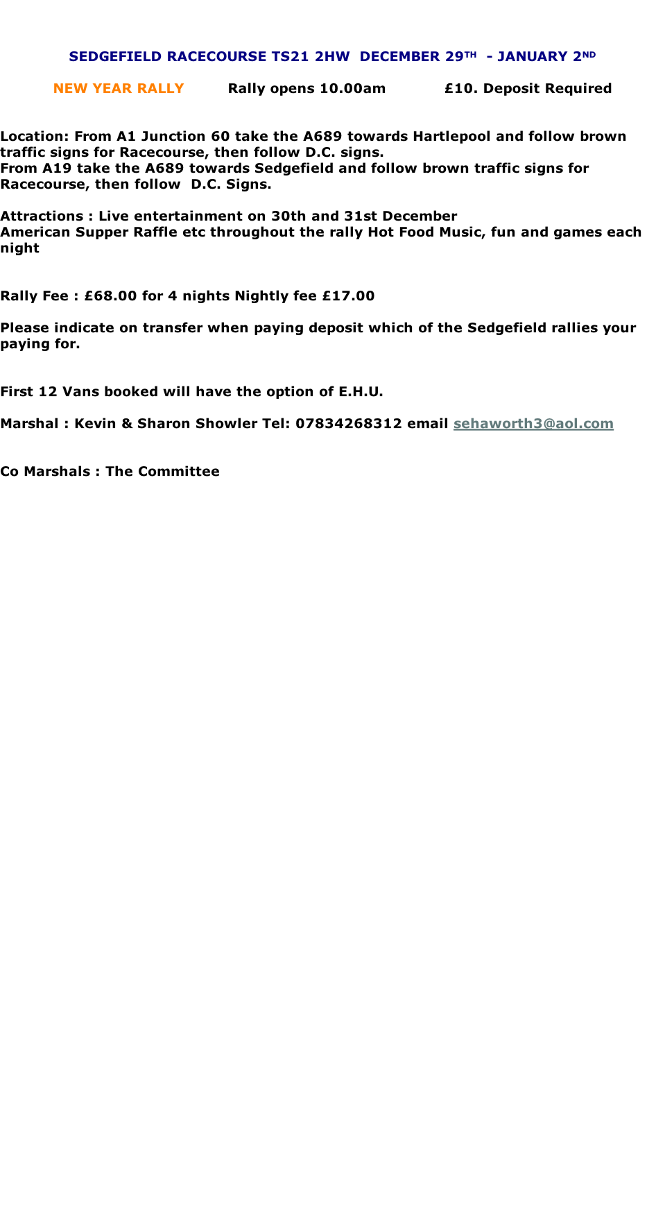 When booking a rally could you please give rally marshals at least one weeks notice prior to the event a deposit of £5.00 will be required ( holiday rally £10.00 )