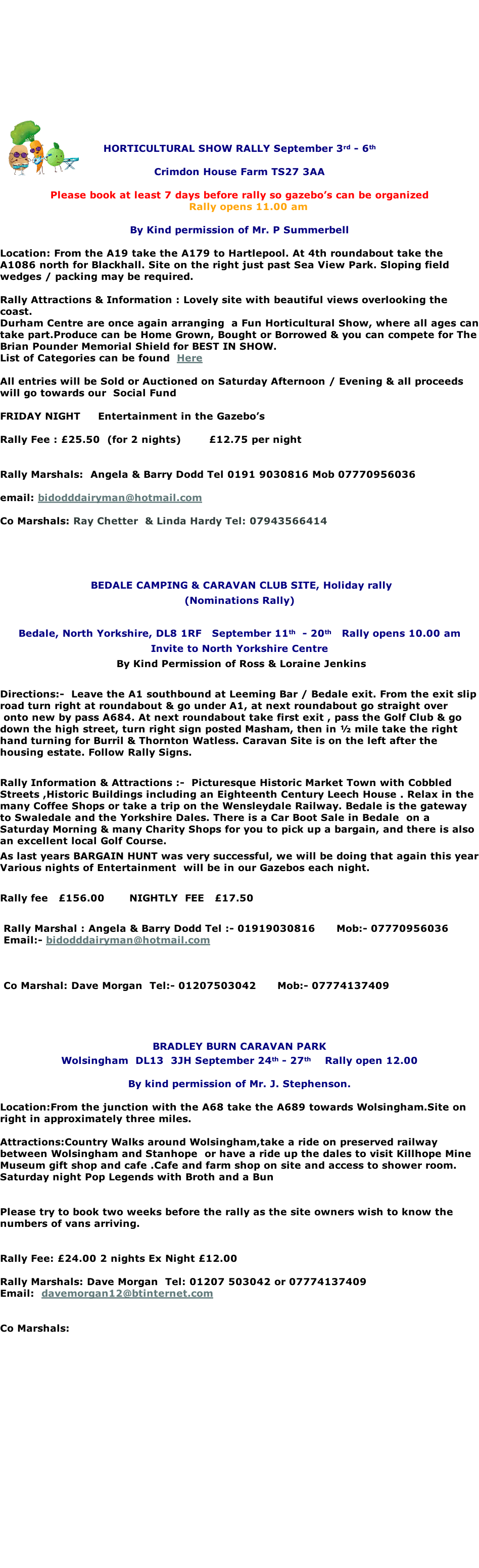 When booking a rally could you please give rally marshals at least one weeks notice prior to the event a deposit of £5.00 will be required ( holiday rally £10.00 )