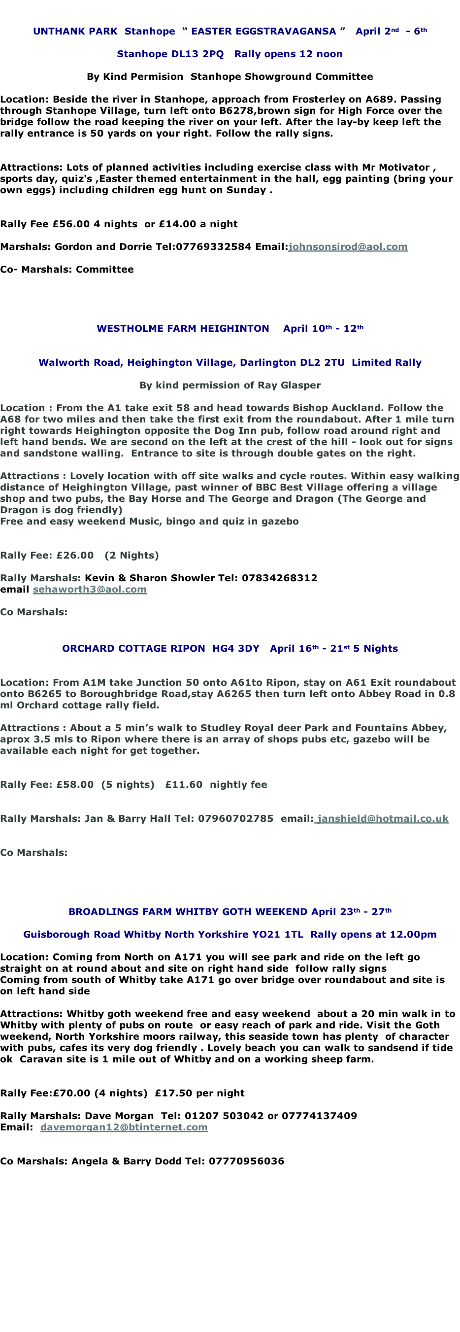 When booking a rally could you please give rally marshals at least one weeks notice prior to the event a deposit of £5.00 will be required ( holiday rally £10.00 )