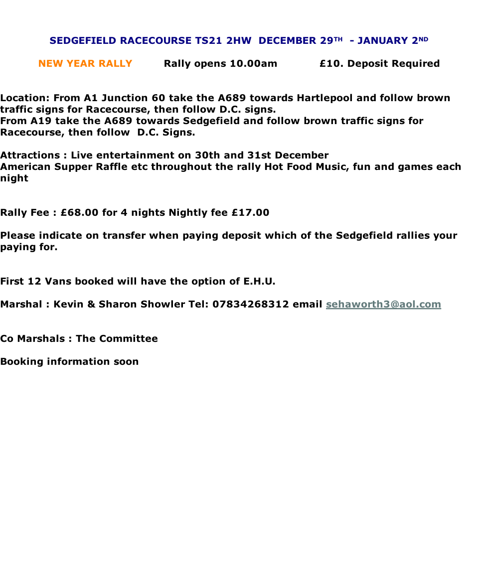 When booking a rally could you please give rally marshals at least one weeks notice prior to the event a deposit of £5.00 will be required ( holiday rally £10.00 )