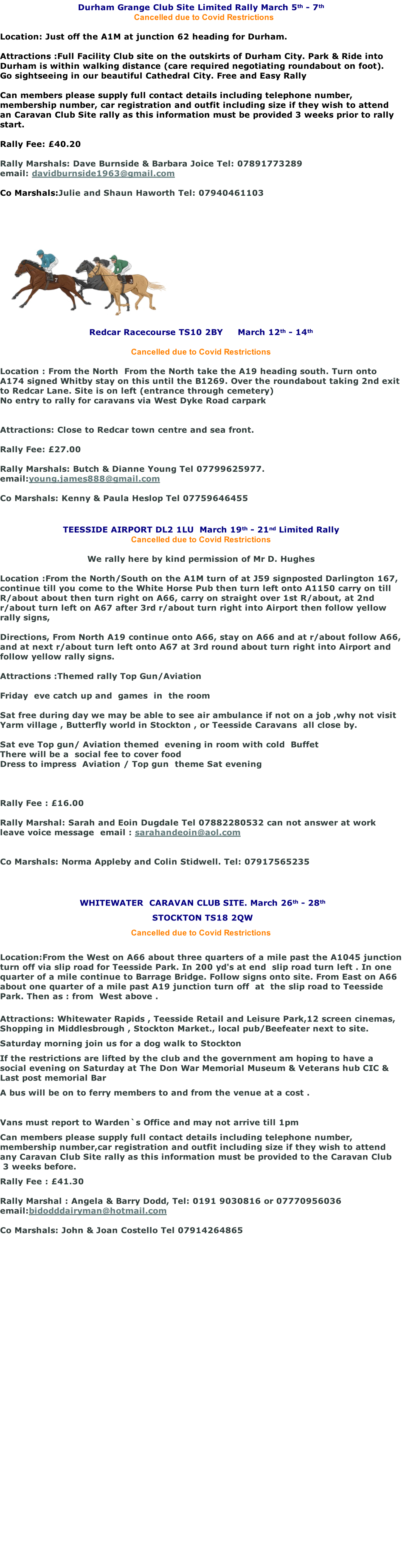 Please check the website before you travel as it will be updated if a Rally has to be cancelled or opening times changed.