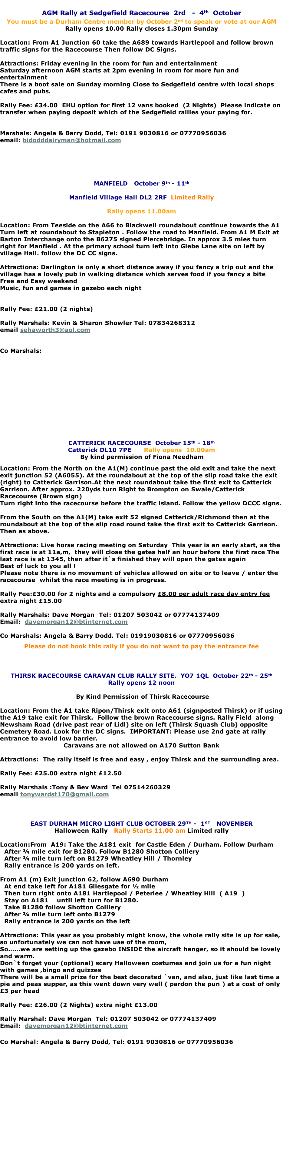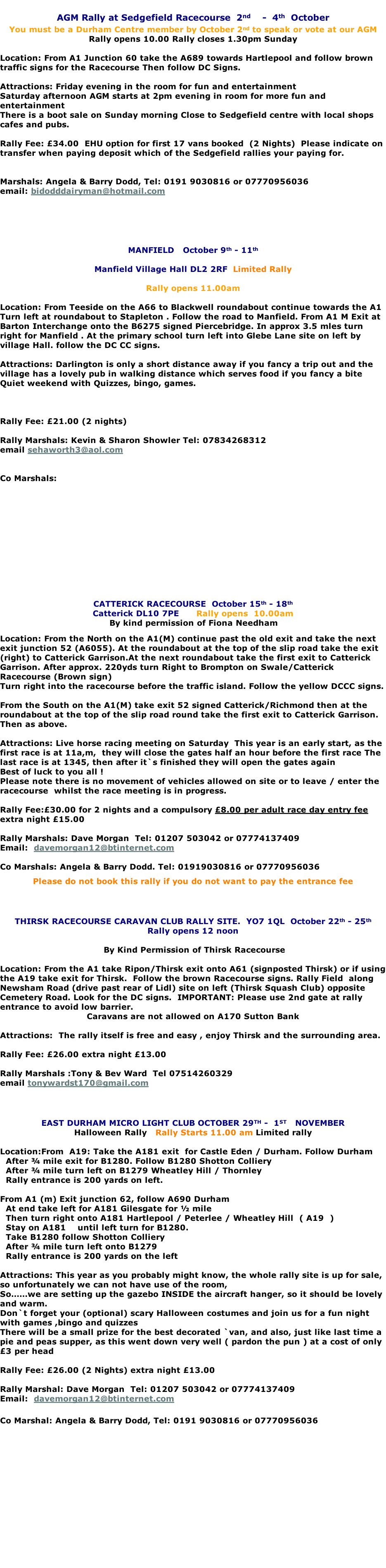 When booking a rally could you please give rally marshals at least one weeks notice prior to the event a deposit of £5.00 will be required ( holiday rally £10.00 )