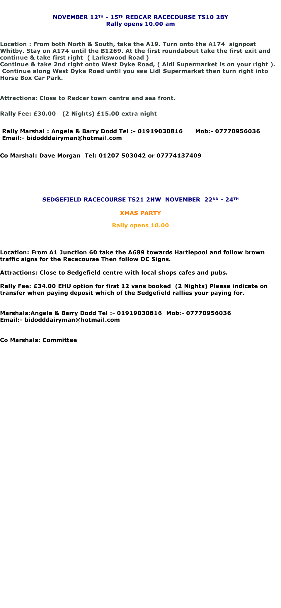 When booking a rally could you please give rally marshals at least one weeks notice prior to the event a deposit of £5.00 will be required ( holiday rally £10.00 )